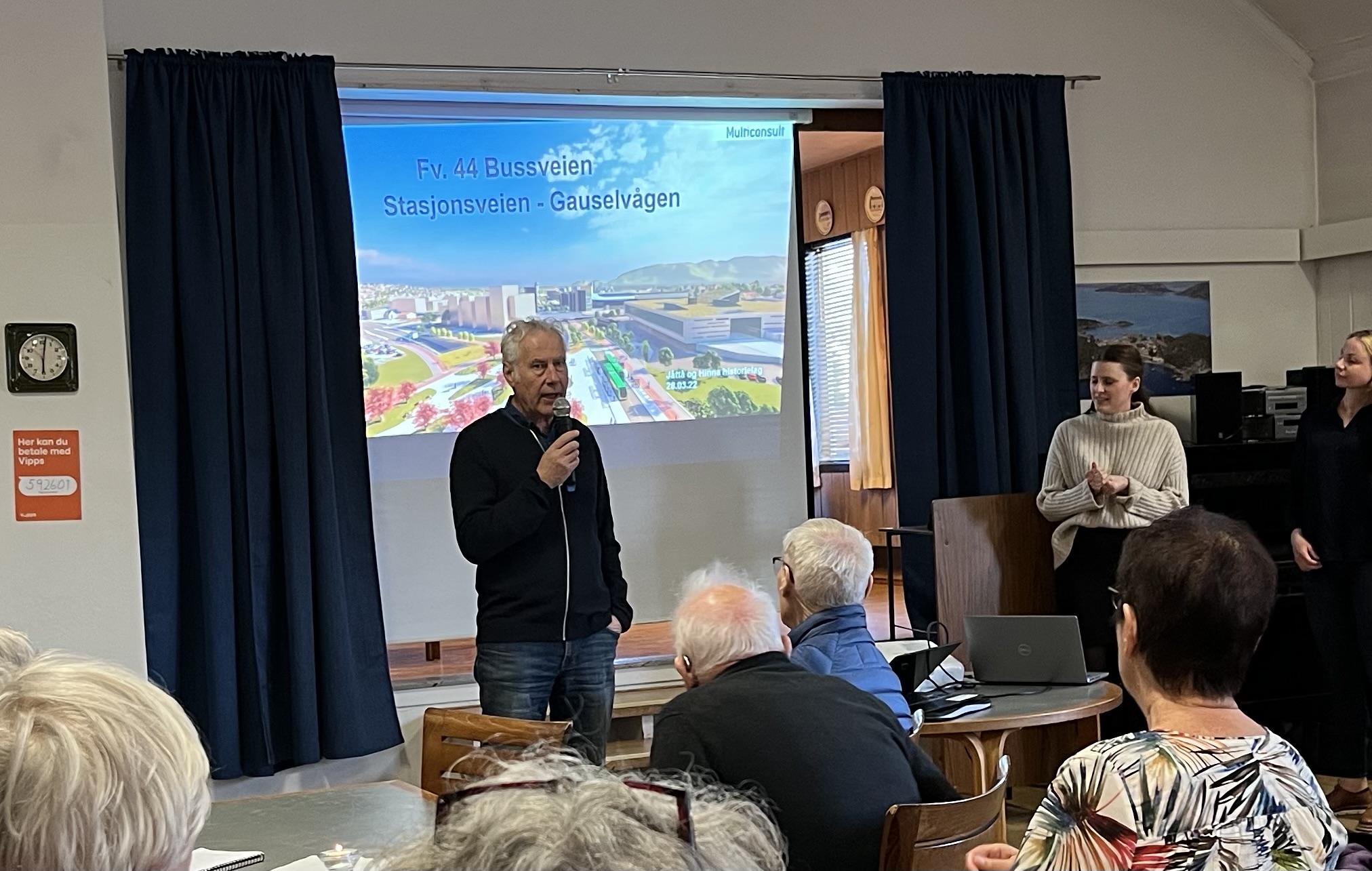 Leder Petter Urdal ønsket velkommen til 45 ivrige fremmøtte, og flere spørsmål ble stilt underveis til nabokontakt Stine Reed og plan- og prosjektleder Marte Håvardsholm.