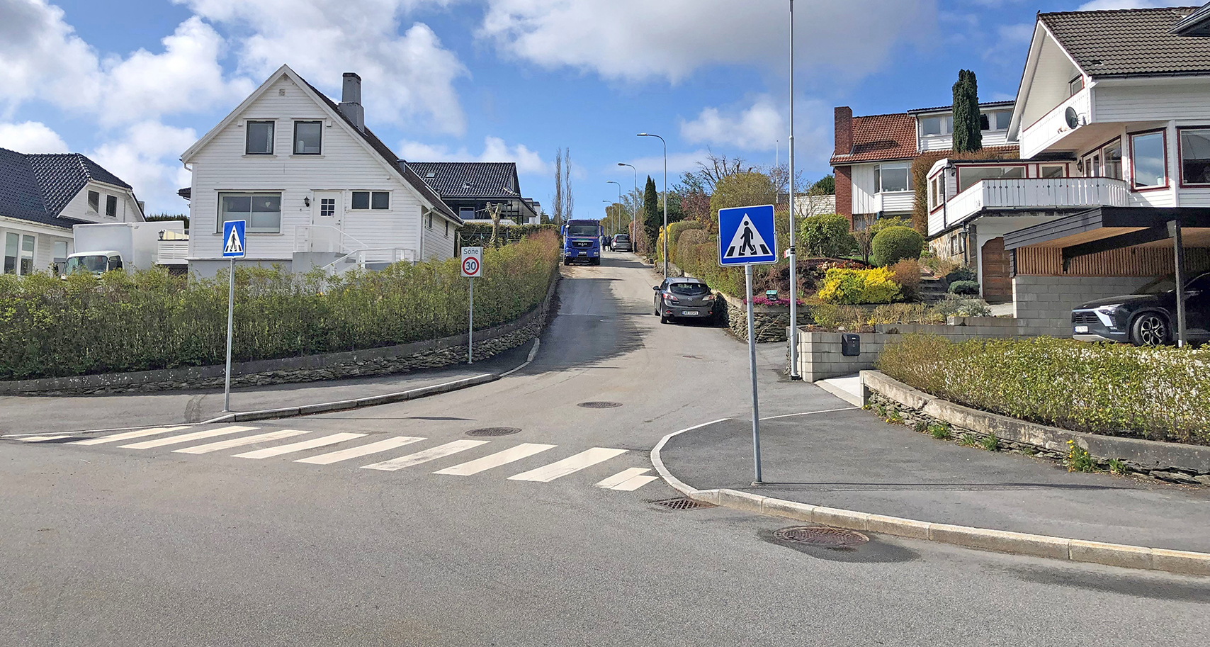 - Det er også et problem at det ofte står mange biler parkert langs veikanten som gjør det vanskeligere for fotgjengere og syklister å ferdes trygt langs veien. Det er heller ingen fortau i området, presiserer hun. I tillegg til privatbiler så er det mye byggeaktivitet i nabolaget om dagen som fører til trafikk av arbeidsbiler og lastebiler som tar mye plass, disse begynner tidlig om morgenen og bidrar til ekstra trafikk og farlig situasjoner.