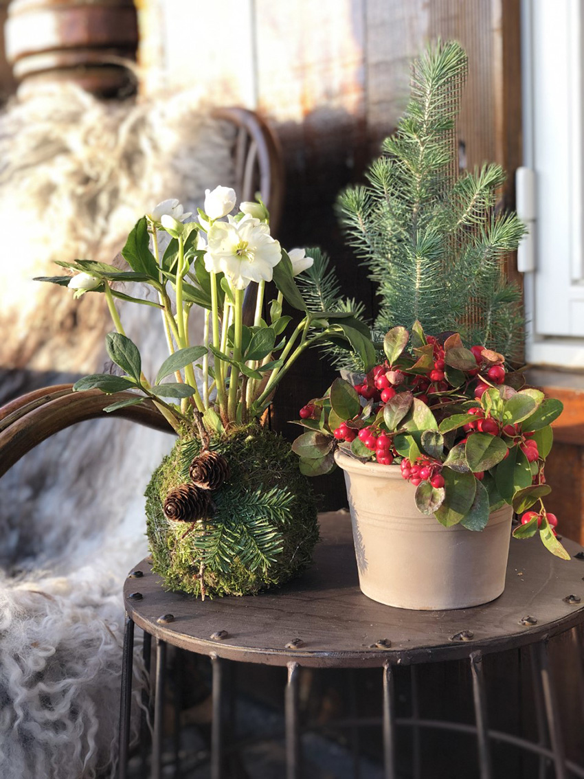 Etter en utrolig fin høst begynner vi nå å bli klar for jul. Vi pynter inngangspartiet med lys, krans og blomster for å gjøre det hyggelig for gjestene, og for oss selv. Dørkransen den kan du kjøpe ferdig hos oss, men det er enkelt å gjøre det selv om du har litt tid til overs.