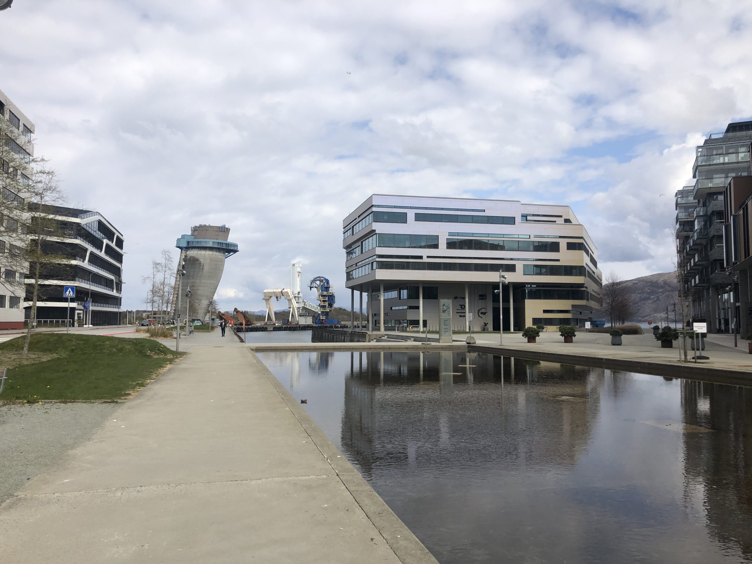 Det var full aktivitet i bygget ytterst på Fjordpiren da vi tok turen innom. Prosjektleder Merete Aanestad forteller at overtakelsen av bygget er 1. juni, men på grunn av Covid-19 og med foreløpig de fleste medarbeidere på hjemmekontor, regner de ikke med at det blir innflytting før i august. Historisk sett er det i Jåttåvågen oljeeventyret startet, så det passer perfekt at Norsk olje og gass nå flytter til Jåttå etter mange år på Forus.