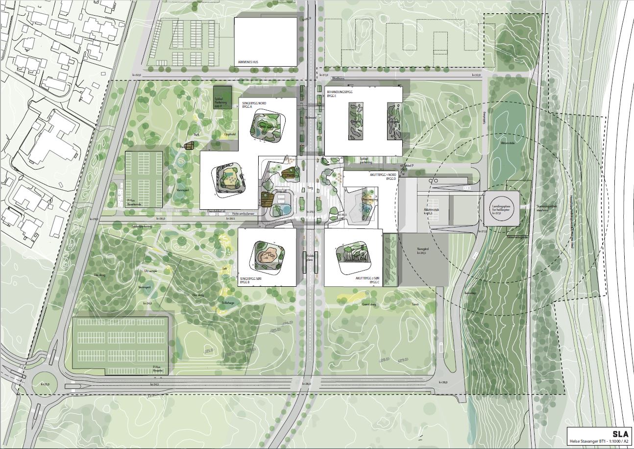 Det vil være begrenset parkeringsdekning for medarbeidere på sykehuset. Det er et krav fra Stavanger kommune at det bygges maks 0,9 parkeringsplasser pr. 100 kvadratmeter sykehusbygg i første byggetrinn. Dette gir et maksimalt antall parkeringsplasser som kan etableres – i tråd med økt satsing på kollektivtransport, sykkel og gange i samfunnet generelt.