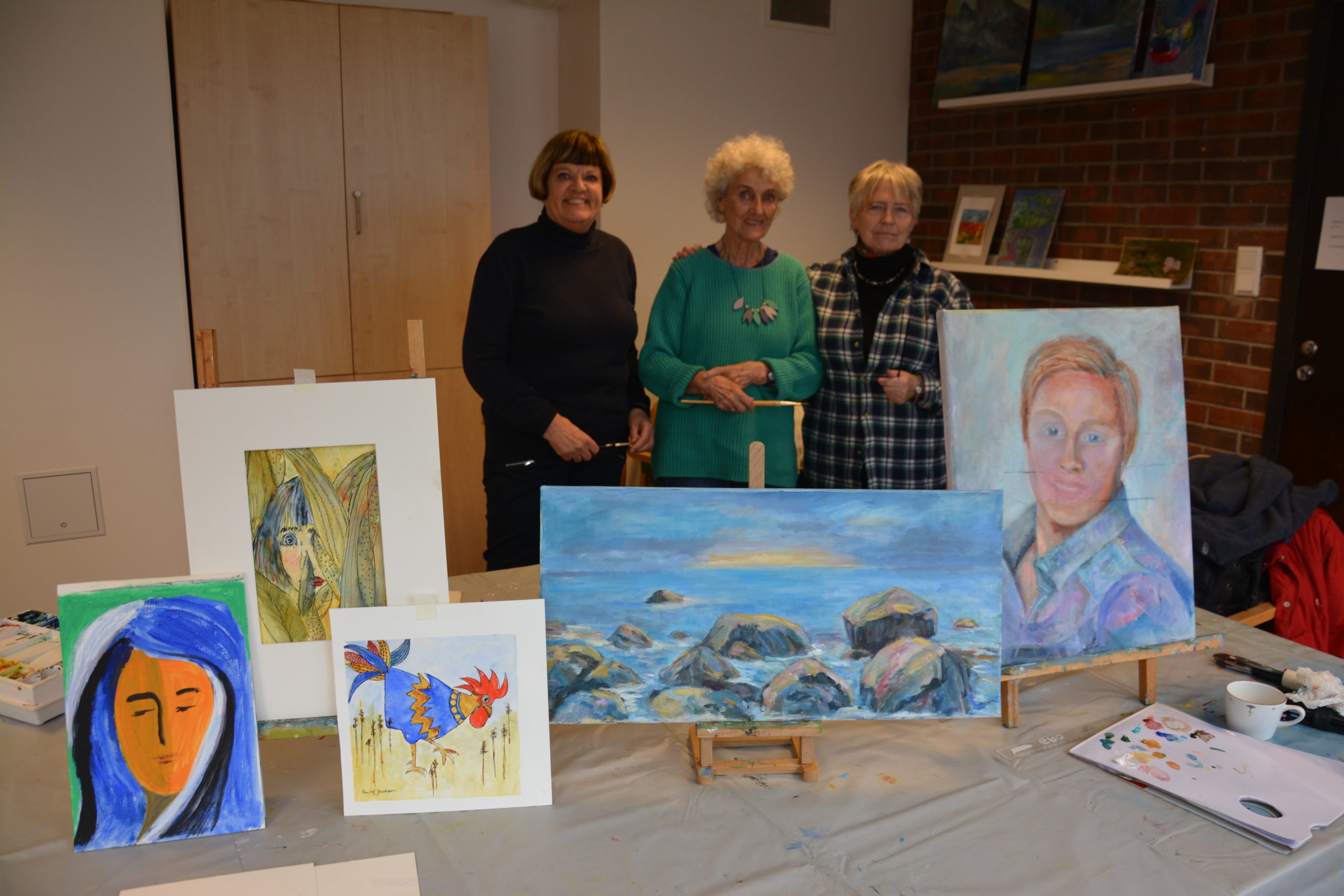 Evy Mathisen, Else Margrethe Jacobsen og Ingebjørg Simonsen tar smilende imot oss på et lyst og tilrettelagt rom på Hinnasenteret, ved siden av Hinna kirke. -Dette er ikke noe malekurs. Vi er noen damer som har gått på kurs, men som ikke vil slutte, ler Ingeborg Simonsen. Alle tre skryter av at senteret har tilrettelagt rommet med voksduk og staffelier for alle som vil komme innom og male. Malekurs har det vært i mange år og Ingebjørg Simonsen har malt på senteret siden 2009. Nå kommer det kun en håndfull personer som har med eget utstyr og er glad i å male. -Det er ikke alltid vi maler så mye. Vi diskuterer og koser oss. Det sosiale er viktigst, er de tre enige om.